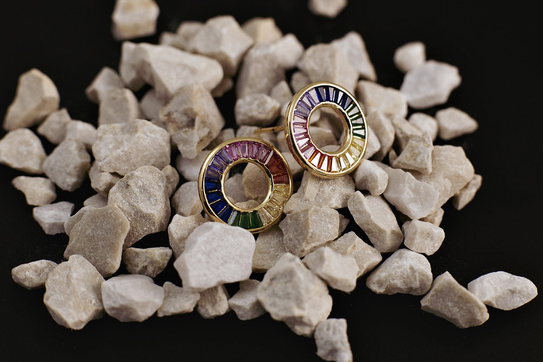 BRINCO FOLHEADO A OURO 18K CÍRCULO COLORIDO